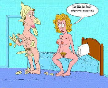 The hard to read Caption says, "This AIDs shit really bothers you, doesn't it!"